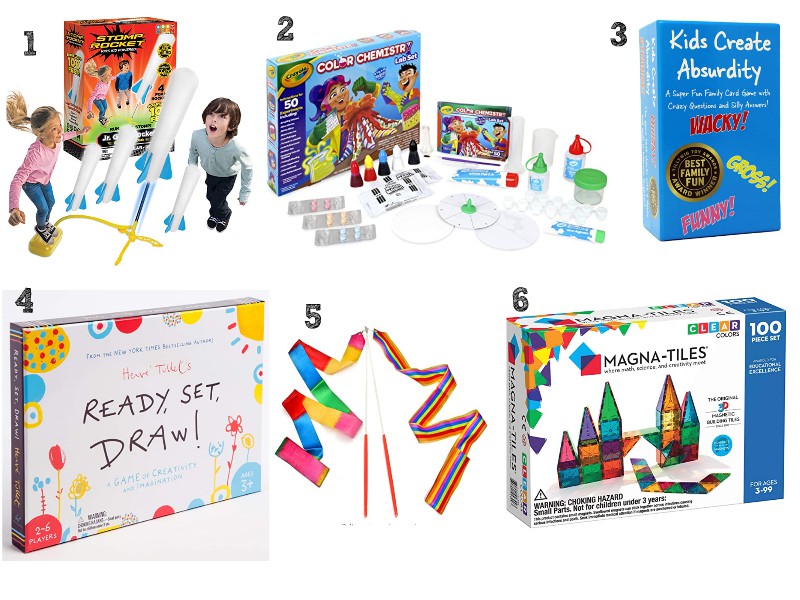1.Stomp Rocket: Although this is best played outside, I’ve never met a kid who didn’t love this thing! Kids as young as three can stomp on the air pump and send foam rockets flying into the air!